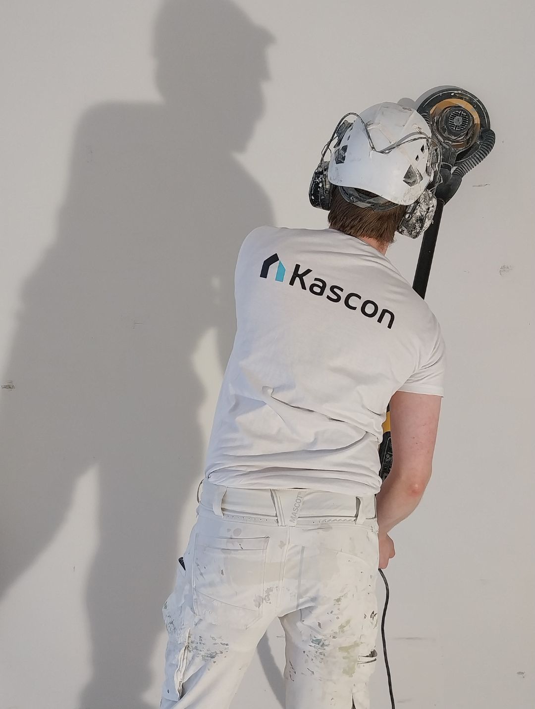 Sisäpuolen tasoite ja maalaustyöt levy sekä harkkopinnoille kivi ja puutaloihin.